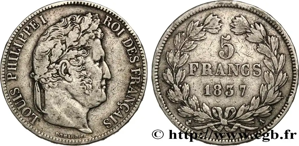 5 francs IIe type Domard 1837 Paris F.324/61 fmd_625447 Modernes Achat Immédiat