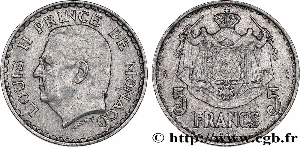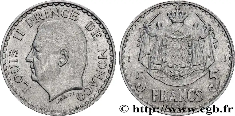 Achetez Aujourd’hui MONACO 5 Francs Louis II 1945 Paris fwo_786190 Monde