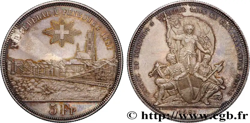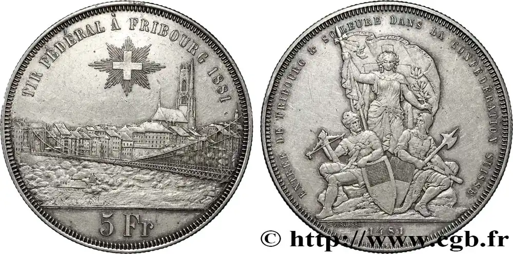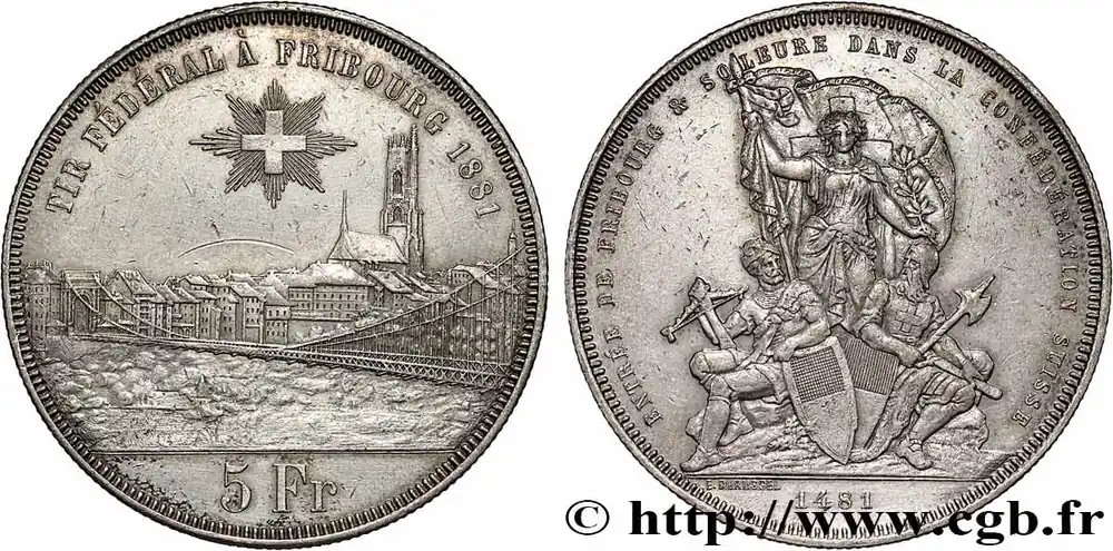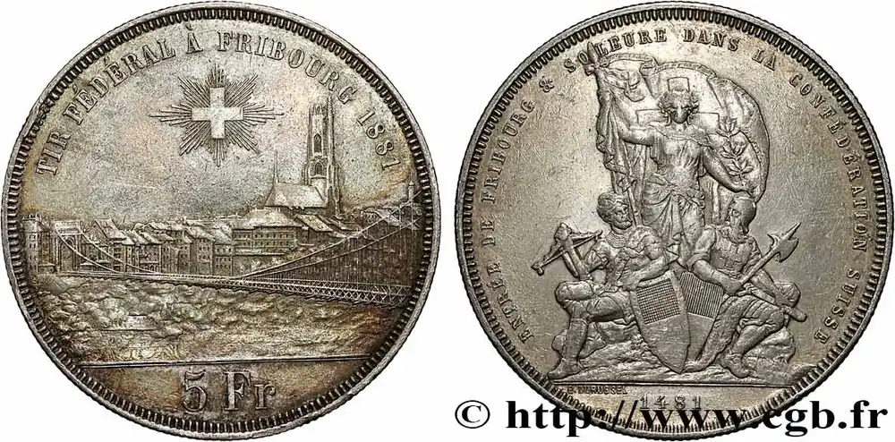 SUISSE 5 Francs, monnaie de Tir, Fribourg 1881 fwo_787167 Monde Seulement Aujourd’hui
