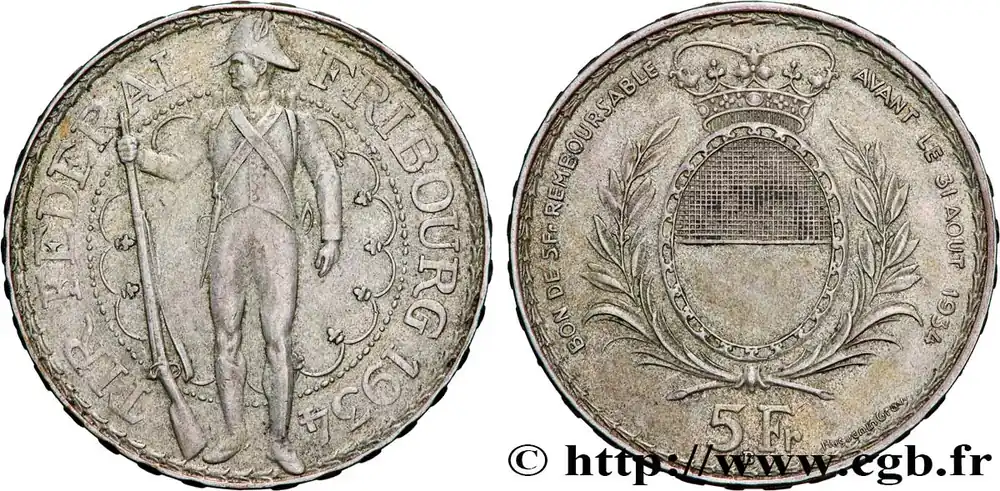 5 Francs, monnaie de Tir, Fribourg