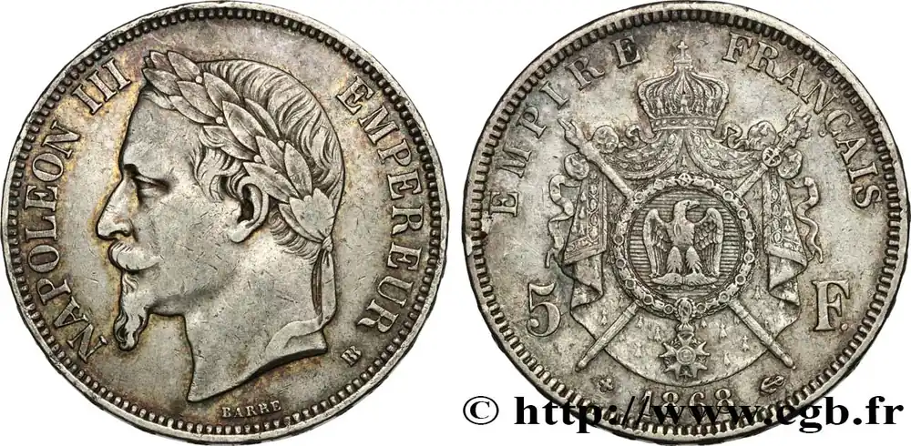 Livraison Express 5 francs Napoléon III, tête laurée 1868 Strasbourg F.331/13 fmd_613939 Modernes