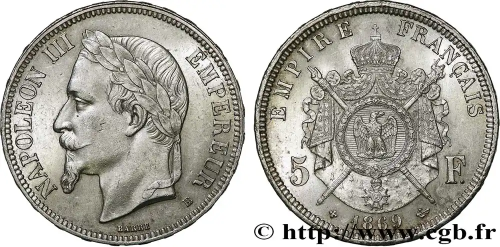 5 francs Napoléon III, tête laurée 1869 Strasbourg F.331/15 fmd_614167 Modernes En Vogue