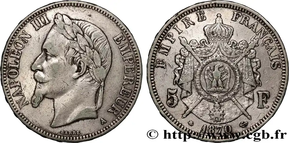 Commander Maintenant 5 francs Napoléon III, tête laurée 1870 Paris F.331/16 fmd_613934 Modernes