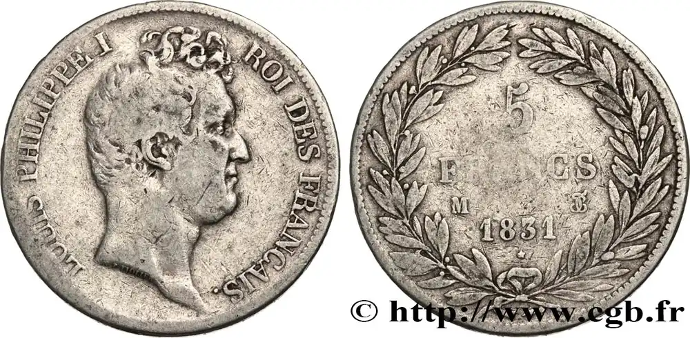 5 francs type Tiolier avec le I, tranche en creux 1831 Lille F.315/27 fmd_617869 Modernes Livraison Mondiale