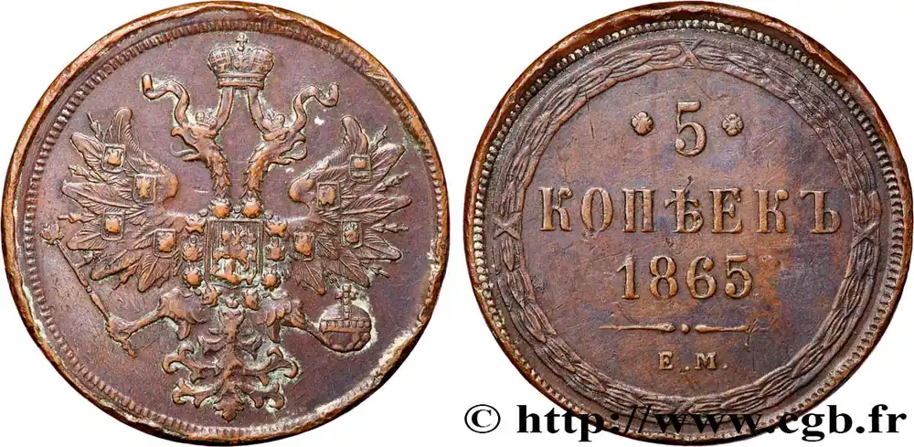 RUSSIE 5 Kopecks 1865 Ekaterinbourg fwo_890725 Monde Authentique