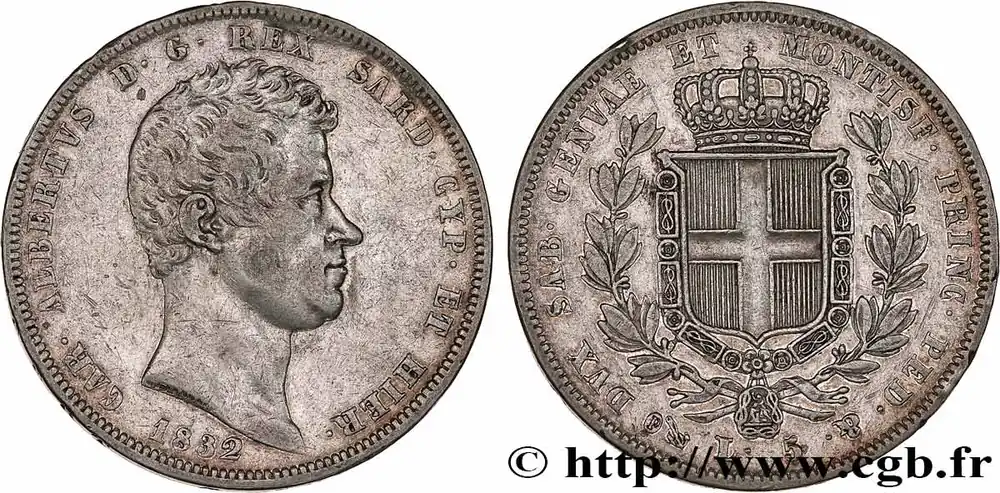 Dernier Modèle ITALIE – ROYAUME DE SARDAIGNE 5 Lire Charles Albert 1832 Gênes fwo_772173 Monde