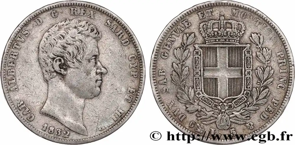 ITALIE – ROYAUME DE SARDAIGNE 5 Lire Charles Albert 1832 Gênes fwo_764221 Monde Prix Bas