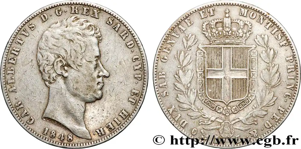 Prix Réduit ITALIE – ROYAUME DE SARDAIGNE 5 Lire Charles Albert 1848 Gênes fwo_896914 Monde