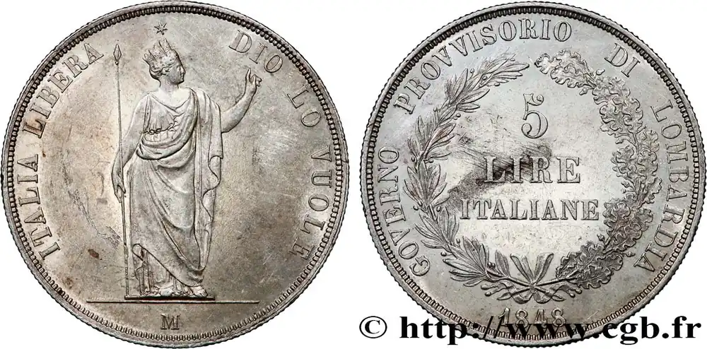 Tendance ITALIE – LOMBARDIE 5 Lire Gouvernement provisoire de Lombardie 1848 Milan fwo_764685 Monde