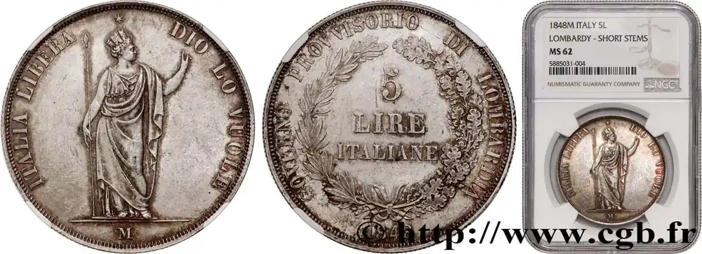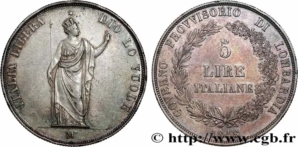 ITALIE – LOMBARDIE 5 Lire Gouvernement provisoire de Lombardie 1848 Milan fwo_784616 Monde Marque