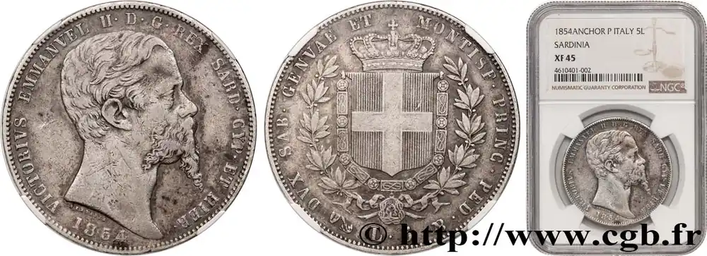 Édition Limitée ITALIE – ROYAUME DE SARDAIGNE – VICTOR-EMMANUEL II 5 Lire 1854 Gênes fwo_827145 Monde