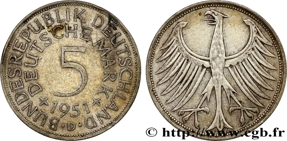 ALLEMAGNE 5 Mark aigle 1951 Munich fwo_848043 Monde Vente Directe