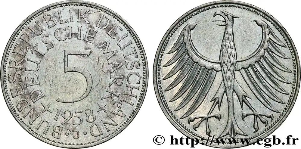 ALLEMAGNE 5 Mark aigle 1958 Hambourg fwo_882258 Monde Bon Plan