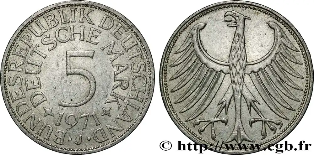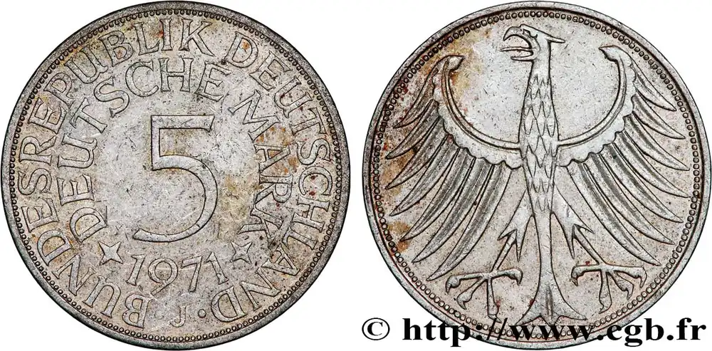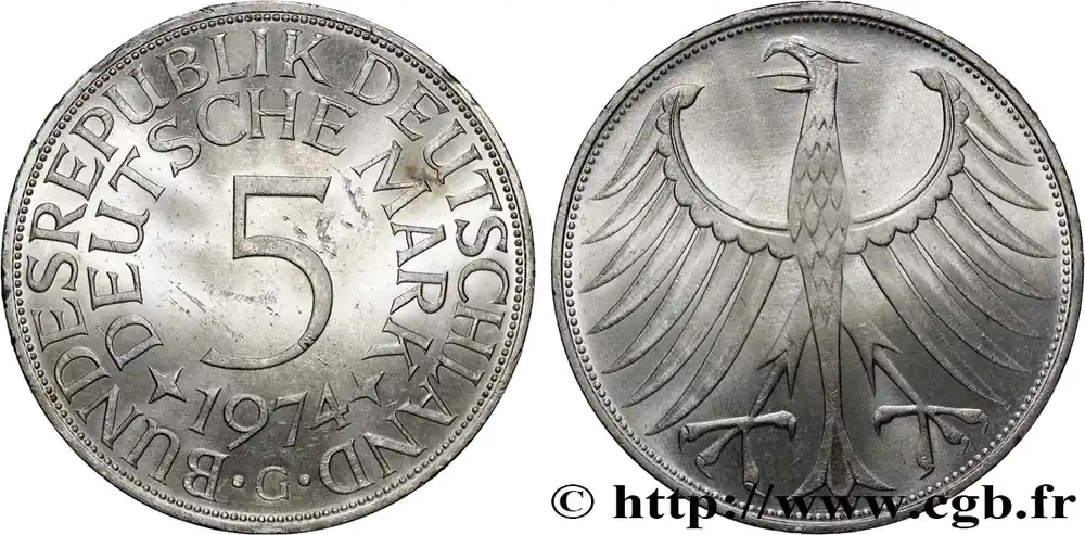 ALLEMAGNE 5 Mark aigle 1973 Karlsruhe- G fwo_834067 Monde Prix Cassé