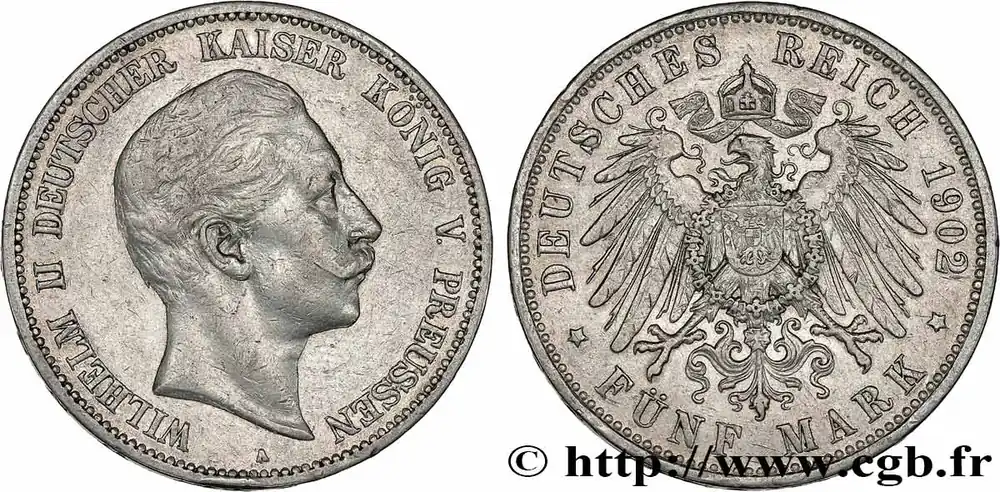 ALLEMAGNE – PRUSSE 5 Mark Guillaume II 1902 Berlin fwo_736296 Monde Prix Choc