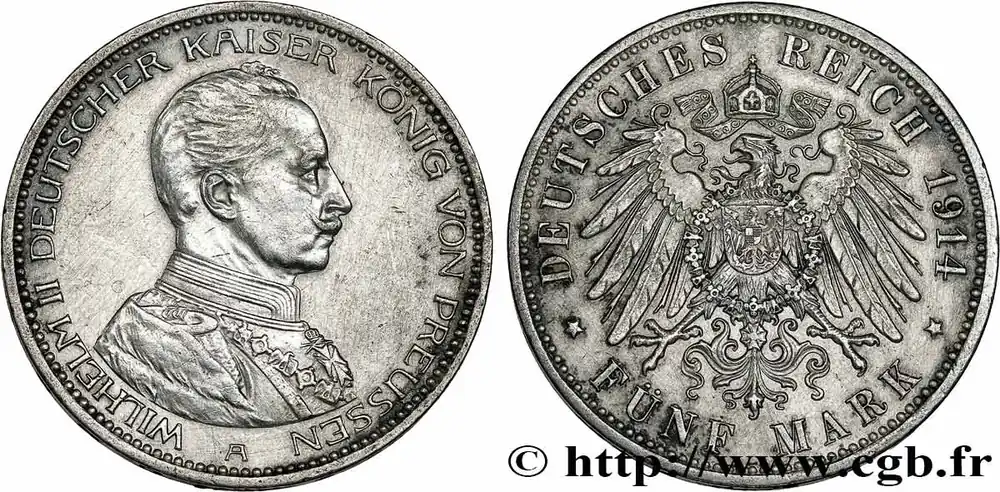 ALLEMAGNE – PRUSSE 5 Mark Guillaume II 1914 Berlin fwo_737180 Monde Fait Main