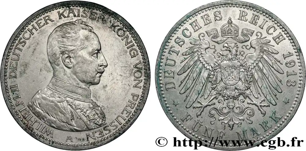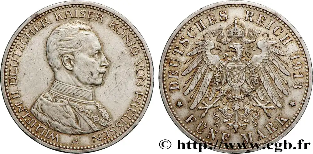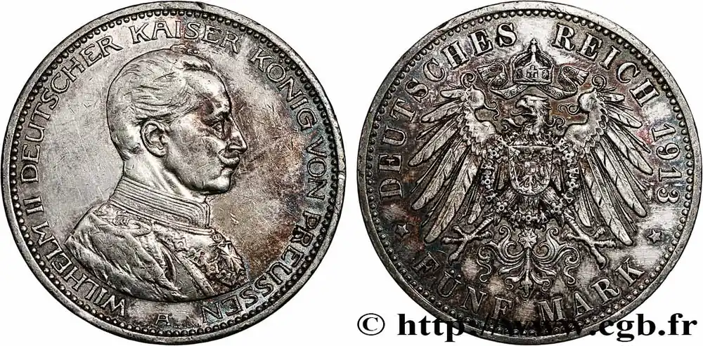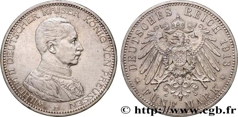 ALLEMAGNE – PRUSSE 5 Mark Guillaume II 1913 Berlin fwo_745923 Monde Super Prix