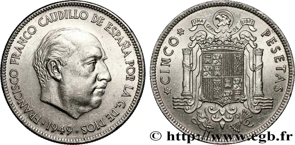 ESPAGNE 5 Pesetas Franco (1950) 1949 fwo_882661 Monde Livraison Express