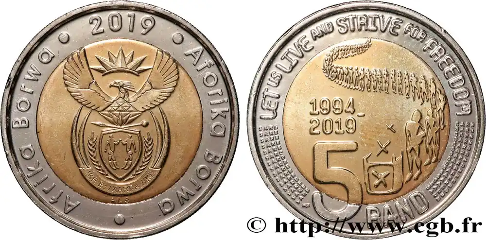 Expédié Aujourd’hui AFRIQUE DU SUD 5 Rand 25 ans de démocratie constitutionnelle 2019 fwo_719061 Monde