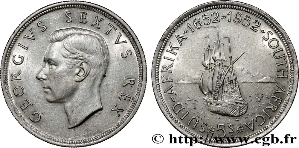 AFRIQUE DU SUD 5 Shillings 300e anniversaire fondation de la ville du Cap 1952 Pretoria fwo_804596 Monde Must-Have