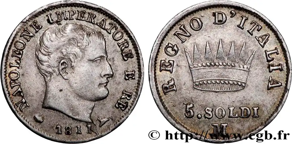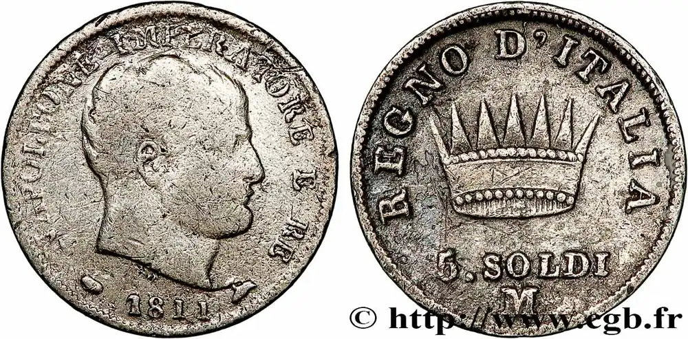 ITALIE – ROYAUME D’ITALIE – NAPOLÉON Ier 5 Soldi Napoléon Empereur et Roi d’Italie 1811 Milan – M fwo_782303 Monde Promotion Saisonnière