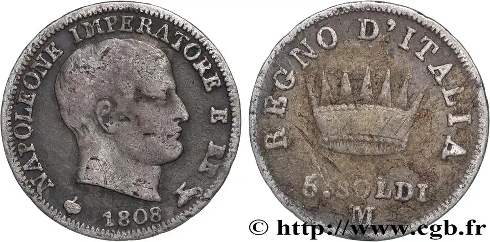 Quantité Limitée ITALIE – ROYAUME D’ITALIE – NAPOLÉON Ier 5 soldi Napoléon Empereur et Roi d’Italie 1808 Milan fwo_822872 Monde