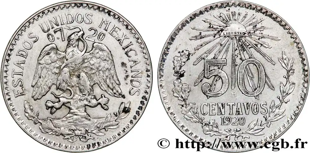 Authentique MEXIQUE 50 Centavos 1920 Mexico fwo_752110 Monde
