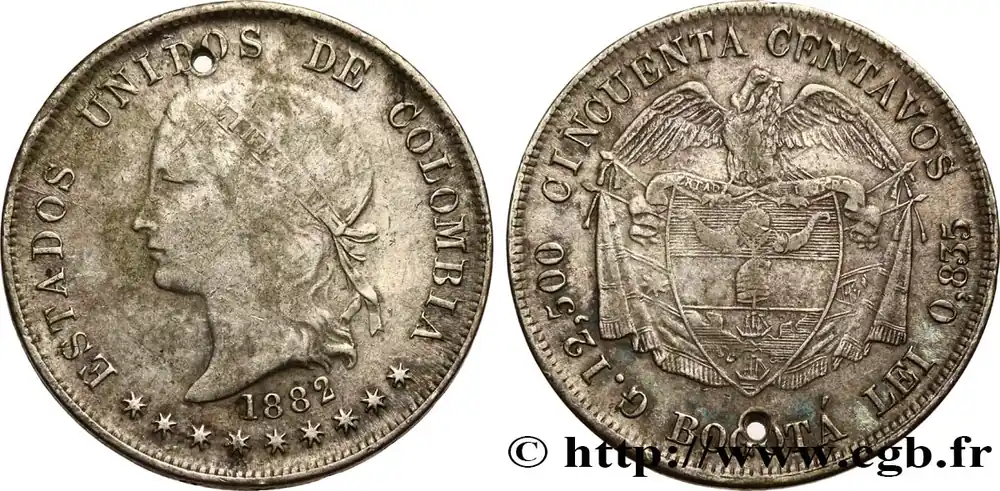 COLOMBIE 50 Centavos 1882 Bogota fwo_755816 Monde Nouveauté
