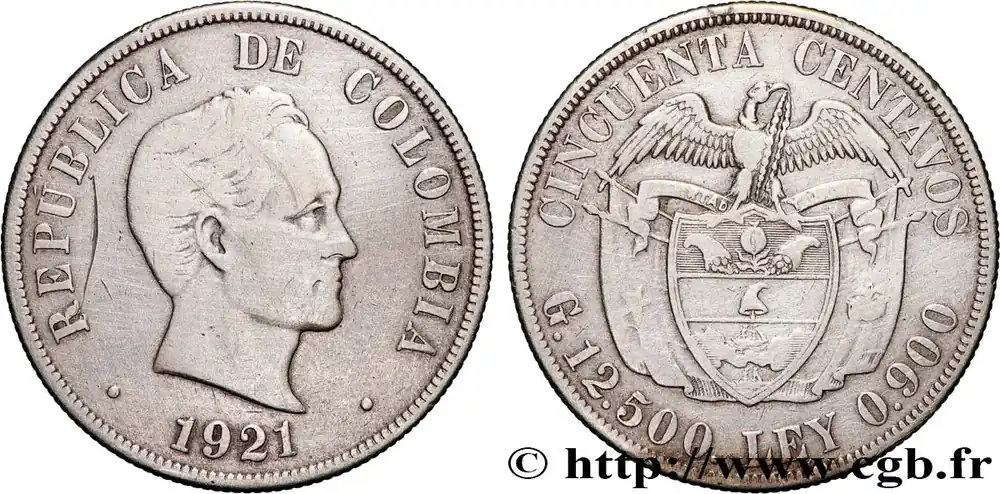 COLOMBIE 50 Centavos 1921 Philadelphie fwo_846080 Monde Nouvel Arrivage