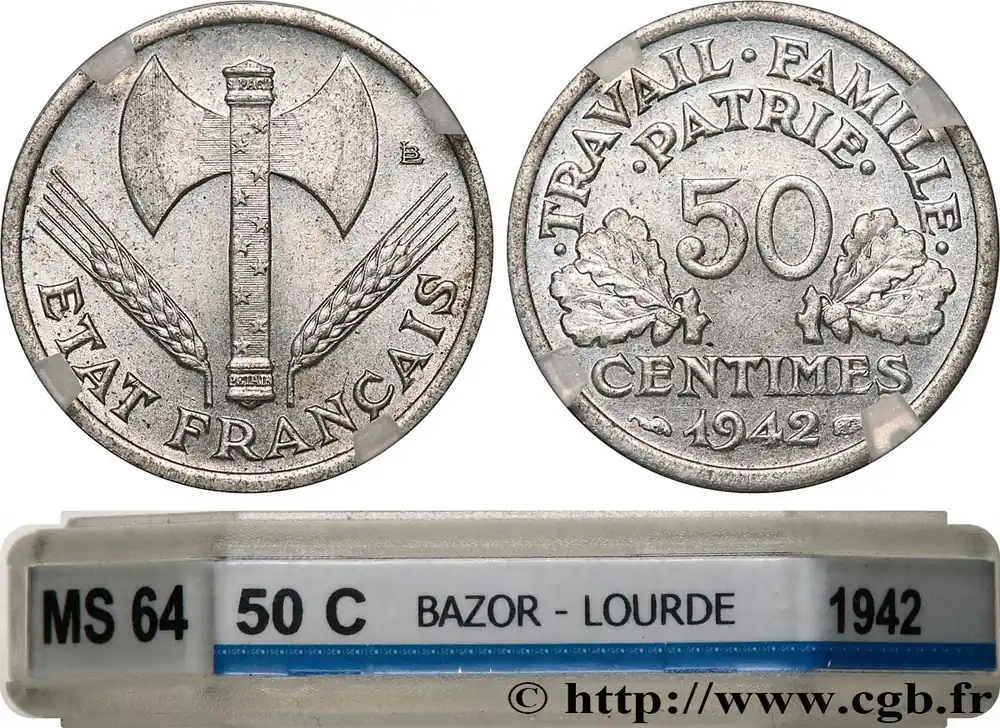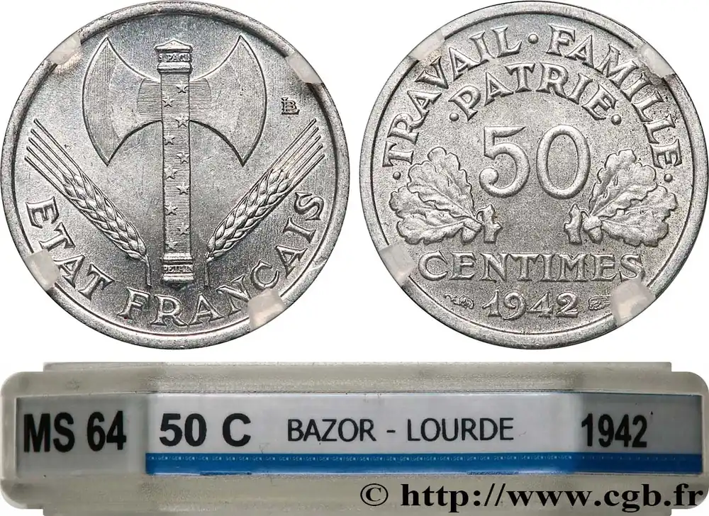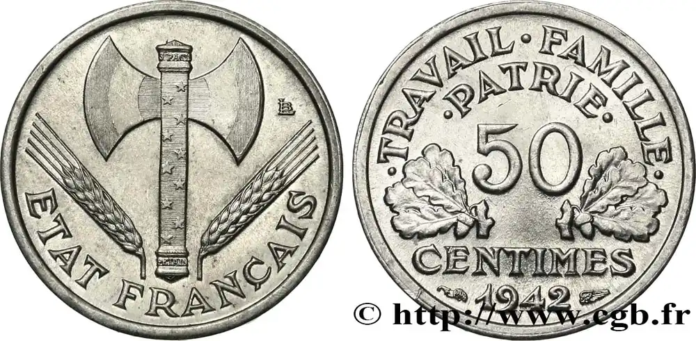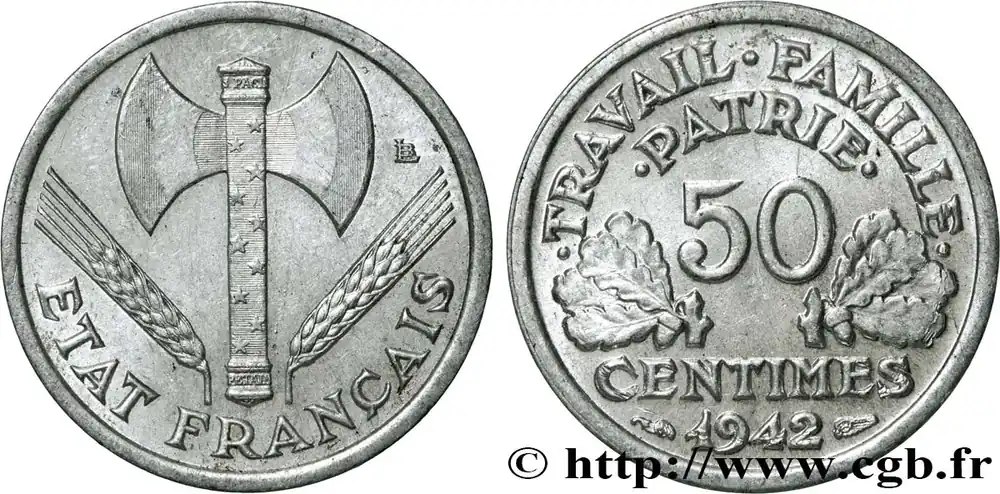 50 centimes Francisque, lourde 1942 Paris F.195/3 fmd_620165 Modernes Authentique