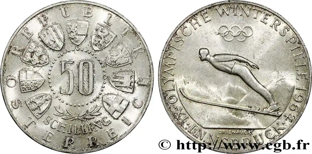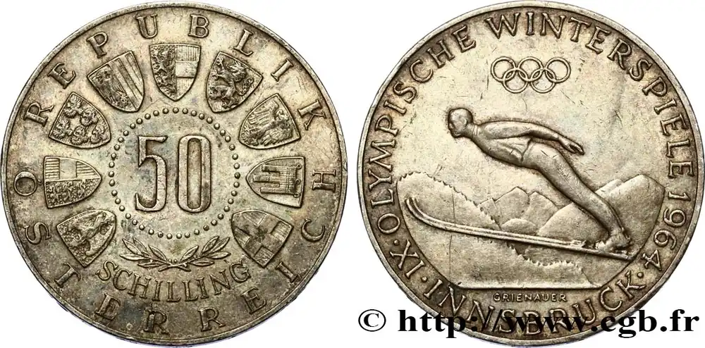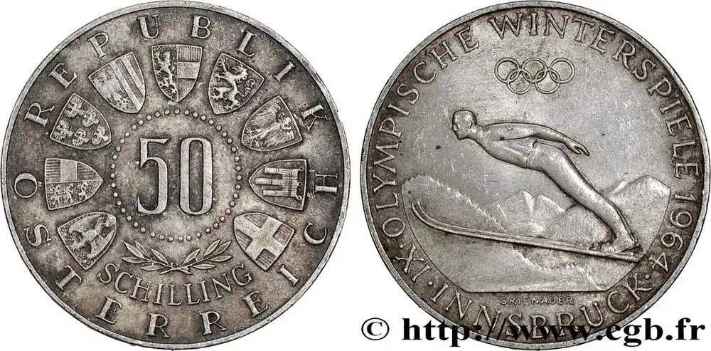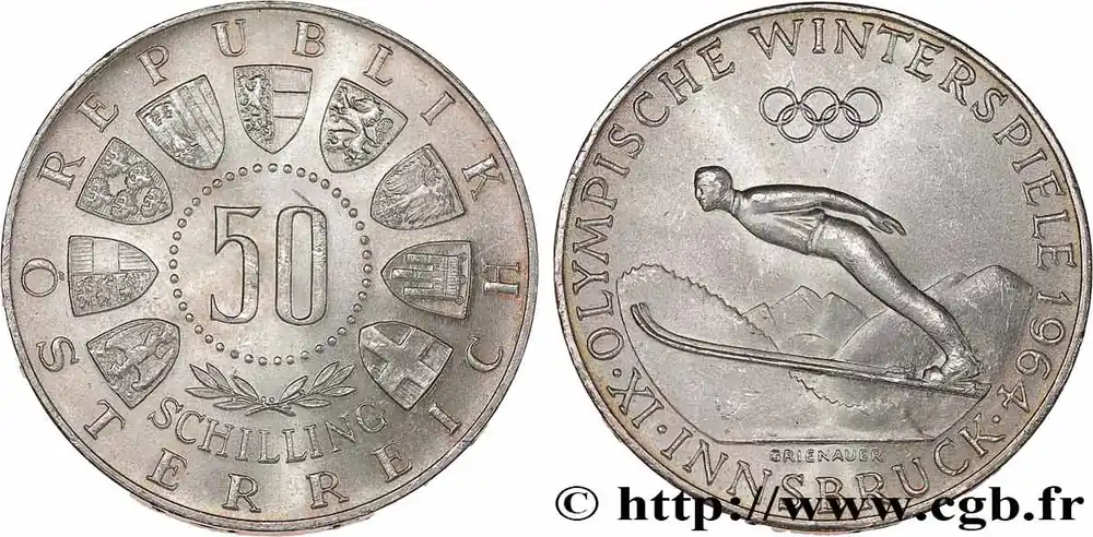 AUTRICHE 50 Schilling Jeux Olympiques d’Innsbruck, saut à ski 1964 fwo_693684 Monde Paiement Sécurisé