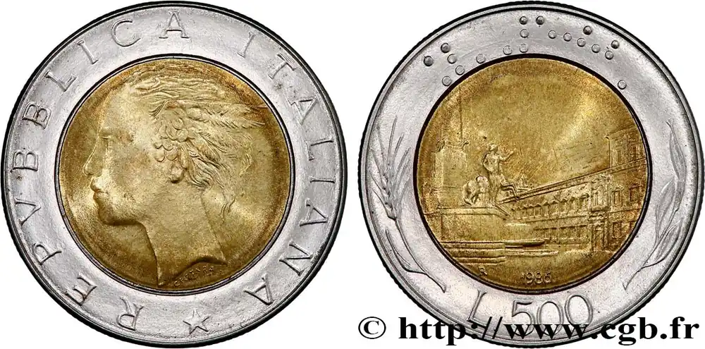 ITALIE 500 Lire tête de femme représentant la République / Place et Palais du Quirinal à Rome 1986 Rome – R fwo_810464 Monde Prix Cassé