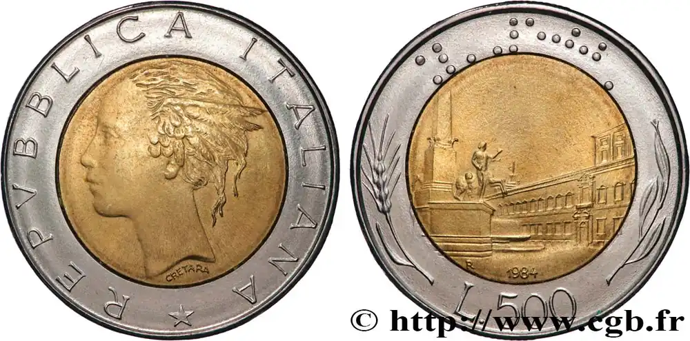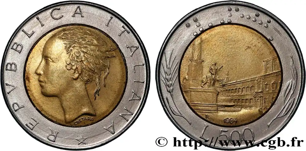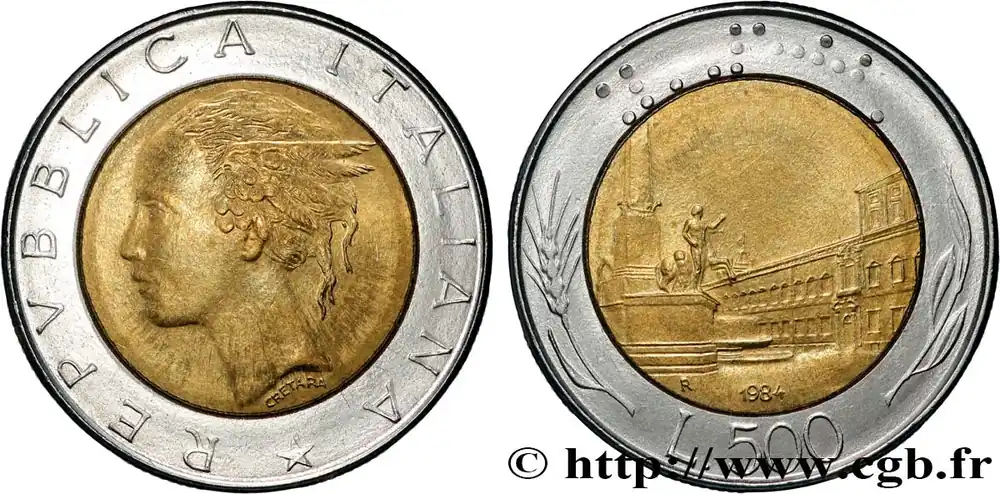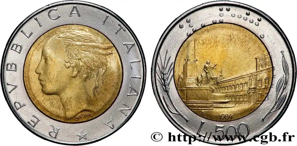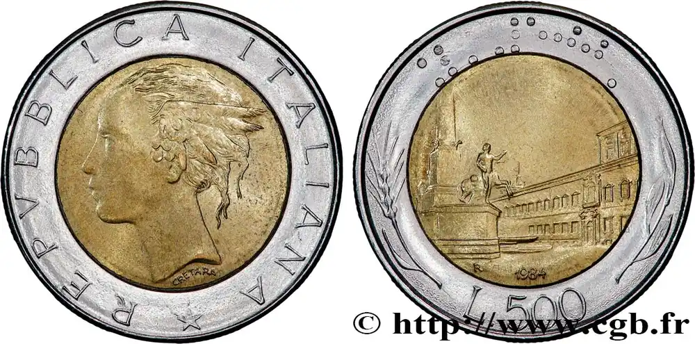 ITALIE 500 Lire tête de femme représentant la République / Place et Palais du Quirinal à Rome 1984 Rome – R fwo_865868 Monde Top Qualité