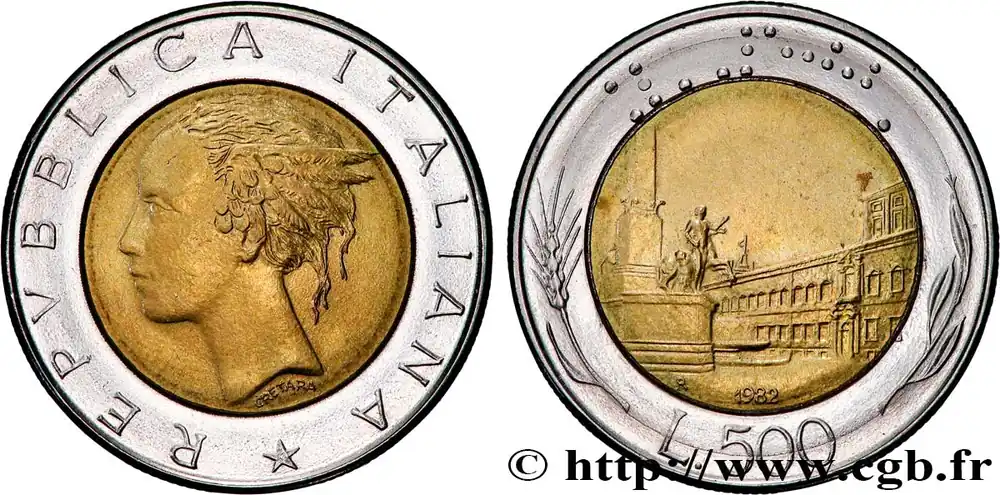 ITALIE 500 Lire tête de femme représentant la République / Place et Palais du Quirinal à Rome 1982 Rome – R fwo_833229 Monde Promotion Saisonnière
