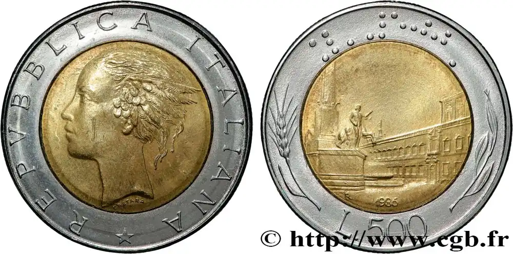ITALIE 500 Lire tête de femme représentant la République / Place et Palais du Quirinal à Rome 1986 Rome – R fwo_810468 Monde Achat Immédiat
