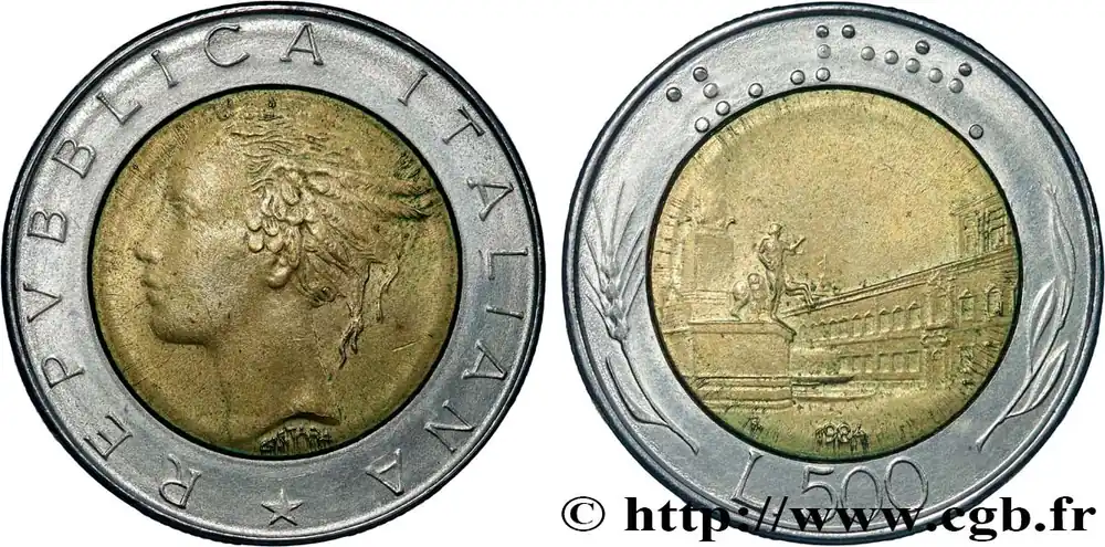 Prix Cassé ITALIE 500 Lire tête de femme représentant la République / Place et Palais du Quirinal à Rome 1984 Rome – R fwo_820802 Monde