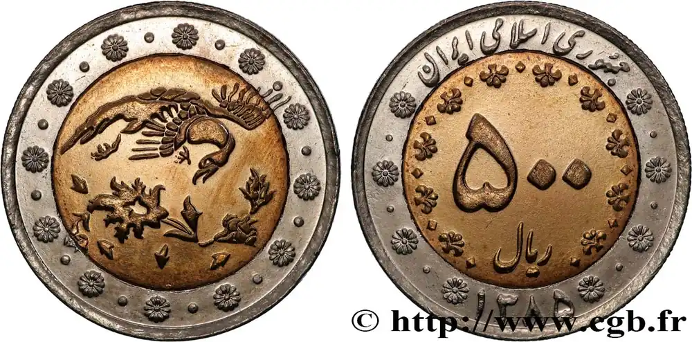 IRAN 500 Rials oiseau mythologique et fleur SH1385 2006 Téhéran fwo_874427 Monde Must-Have