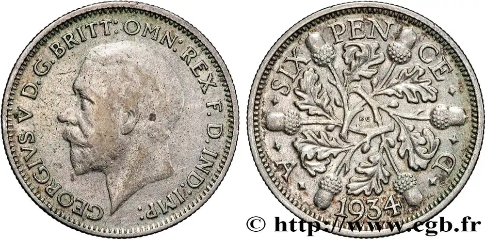 Livraison Gratuite ROYAUME-UNI 6 Pence Georges V 1934 fwo_870838 Monde