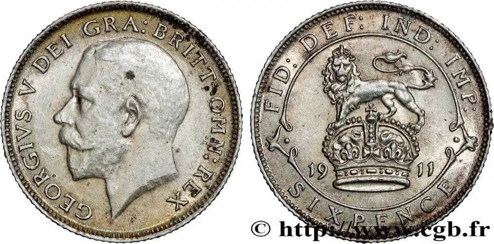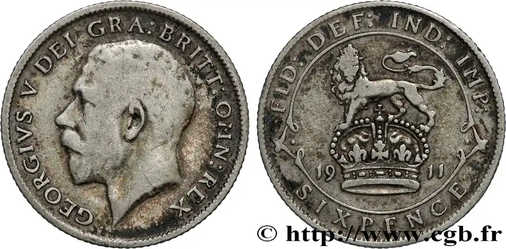 Original ROYAUME-UNI 6 Pence Georges V 1911 fwo_851991 Monde