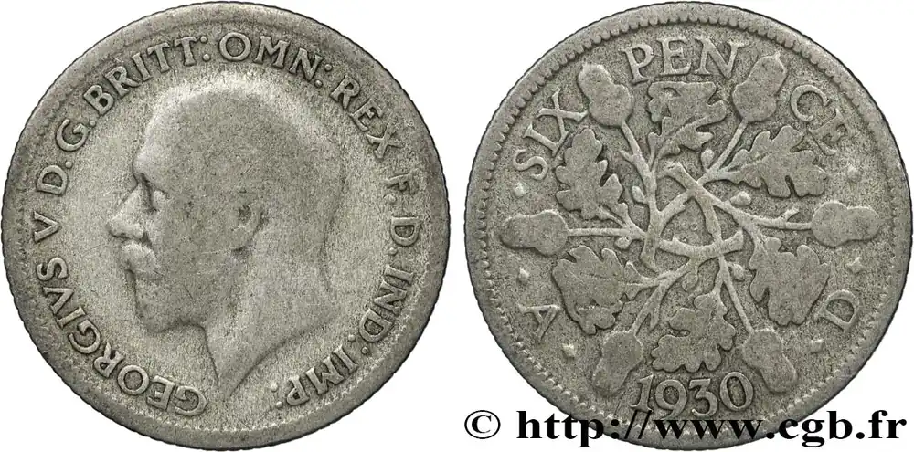 Original ROYAUME-UNI 6 Pence Georges V 1930 fwo_853230 Monde