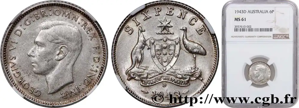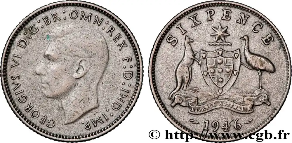 AUSTRALIE 6 Pence Georges VI 1943 Denver fwo_763144 Monde Must-Have