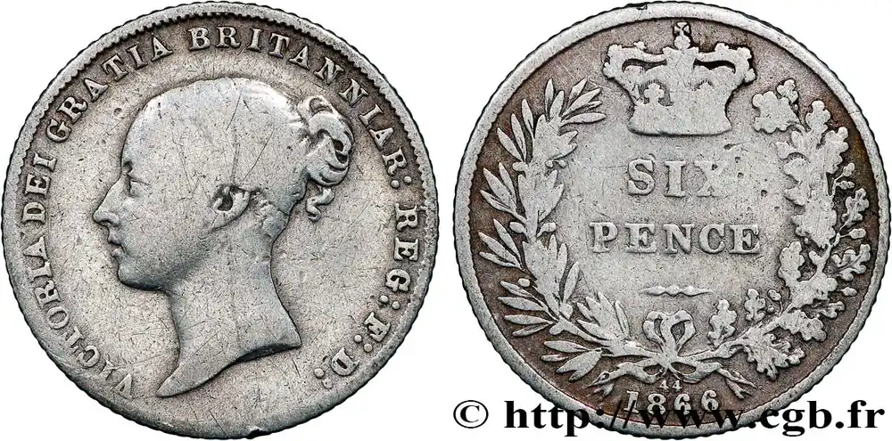 Offre Spéciale ROYAUME-UNI 6 Pence Victoria tête jeune 1866 Londres fwo_793651 Monde
