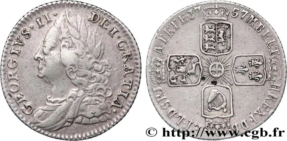 GRANDE-BRETAGNE – GEORGES II 6 Pence 1757 fwo_823018 Monde Must-Have