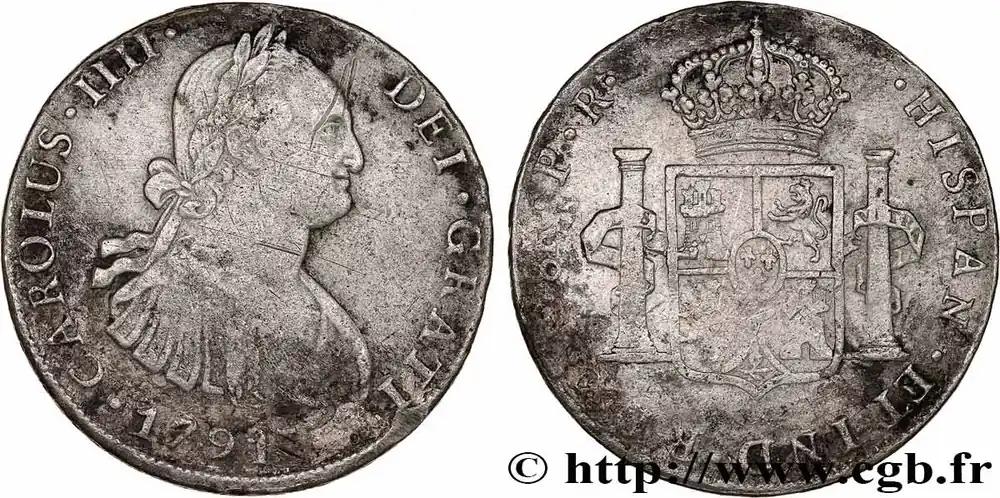 BOLIVIE 8 Reales Charles IV 1791 Potosi fwo_764199 Monde Livraison Gratuite