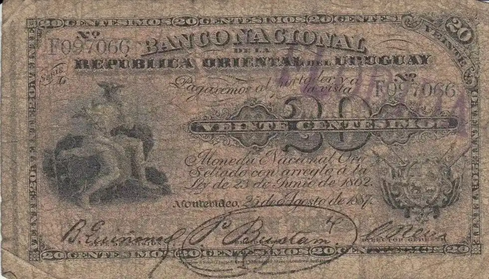 Livraison Express Billet Uruguay 20 Centisimos Mercure – 25-08-1887