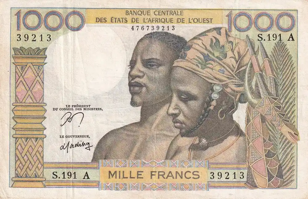 Top Qualité Billet BCEAO 1000 Francs – Couple africains – Fleuve – ND (1978-79)- Lettre A (Côte d’Ivoire) – Série S.191 – P.103Am