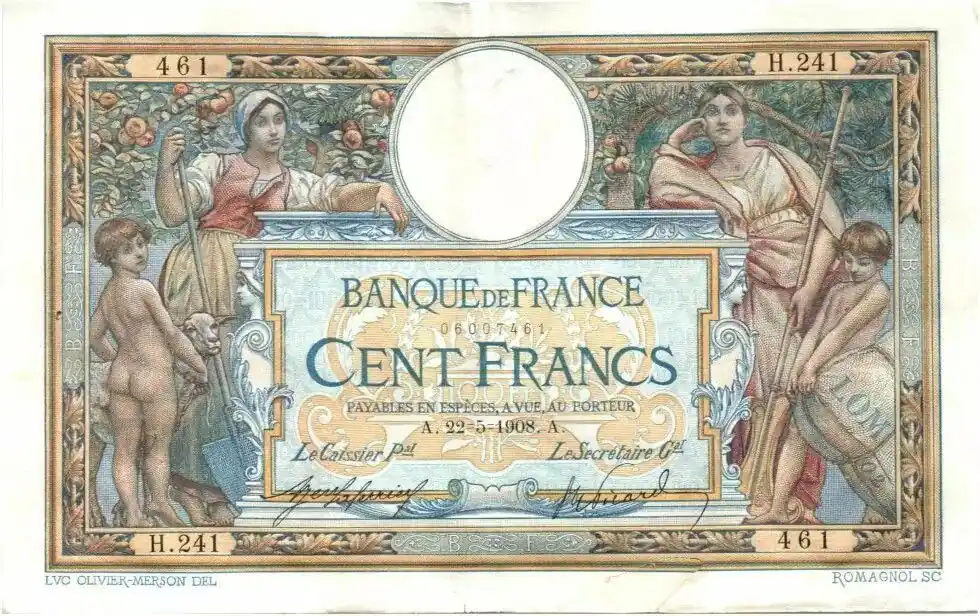 Top Qualité Billet France 100 Francs Luc Olivier Merson – 22-05-1908 Série H.241-461