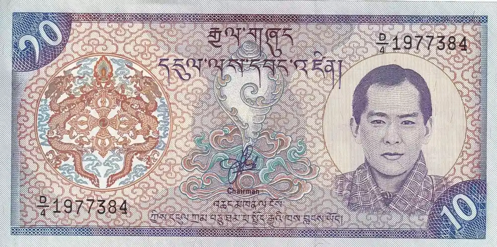 Top Vente Billet Bhoutan 10 Ngultrum – Roi Jigme S. Wangchuk – Palais Paro Dzong – ND (2000) – Série D.4 – P.22