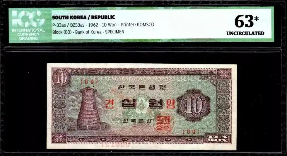 Billet Corée du Sud 10 Won Tour Médiévale, Navire de Guerre – 1962 – ICG UNC63 Usine Directe