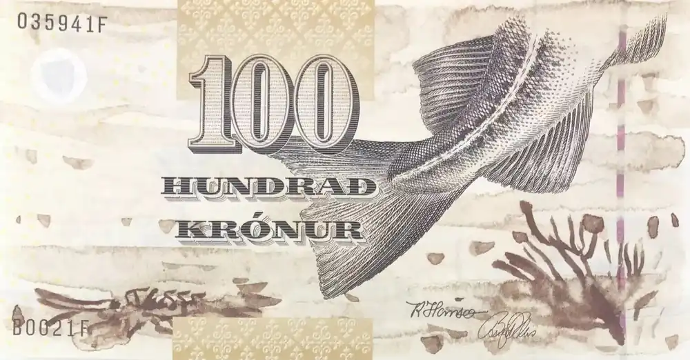 Billet Iles Féroé 100 Kronur – Poisson – 2002 – Série B-F – P.25 Offre Spéciale